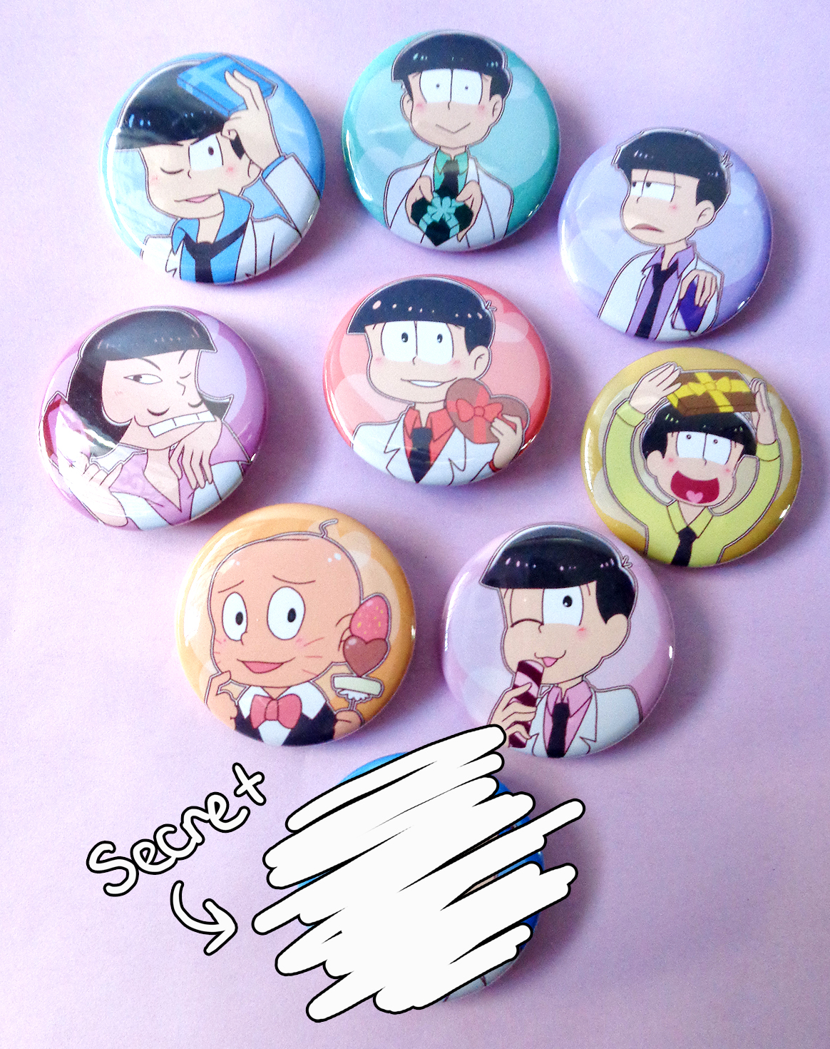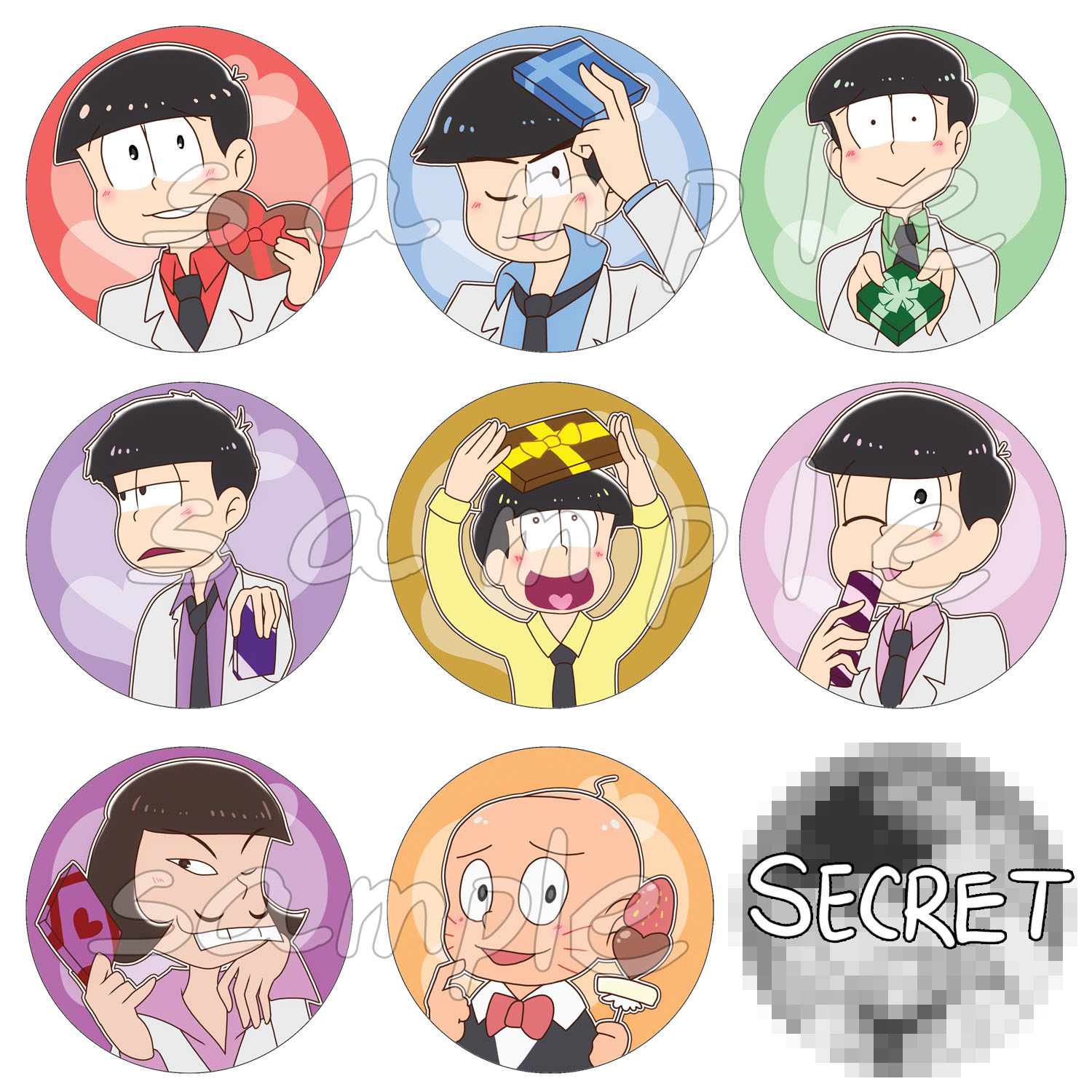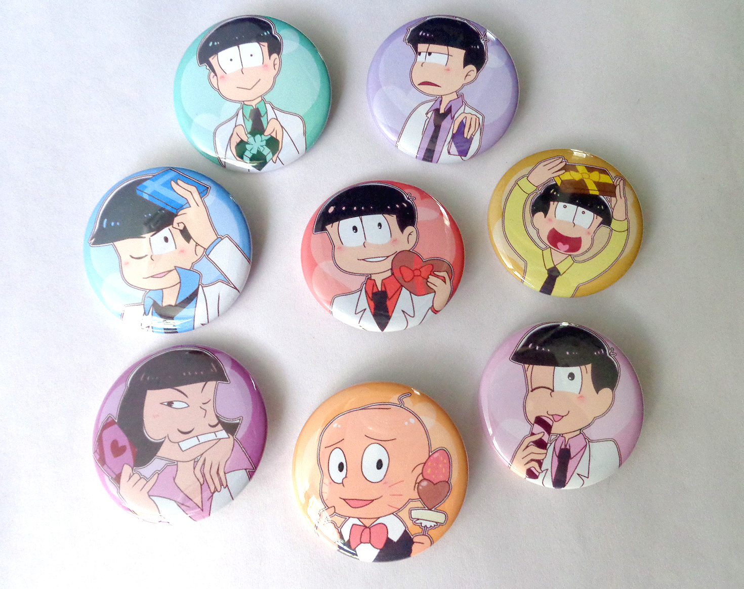1.5" pin back buttons celebrating White Day with the Matsuno sextuplets and friends!